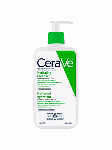 CeraVe Hydrating Cleanser 562ml gently cleanses while maintaining hydration for normal to dry and sensitive skin.