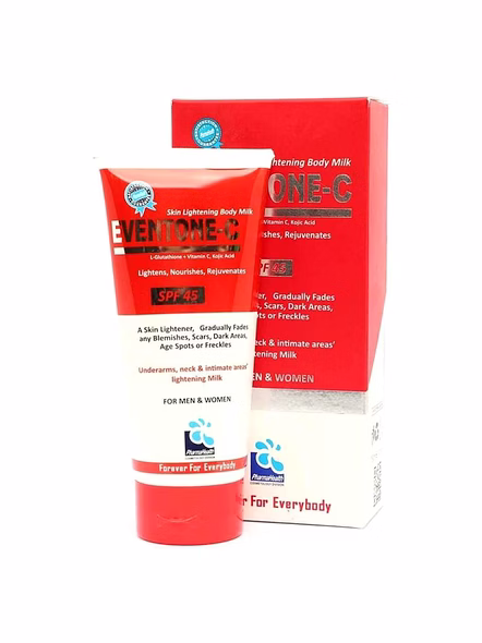 Eventone C Body Milk SPF45 is a lightweight body lotion that helps maintain skin hydration while providing sun protection.